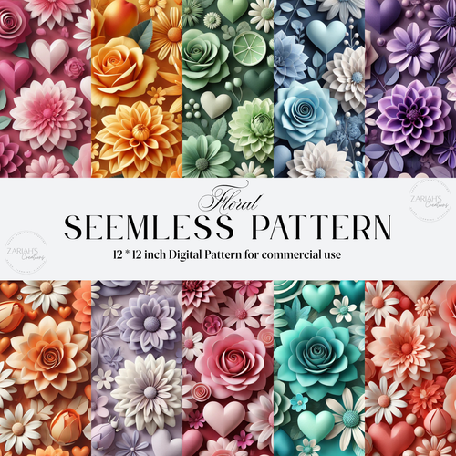 Whimsical Bloom Digital Papers – 10 Colorful 12x12 Floral Backgrounds for Crafting